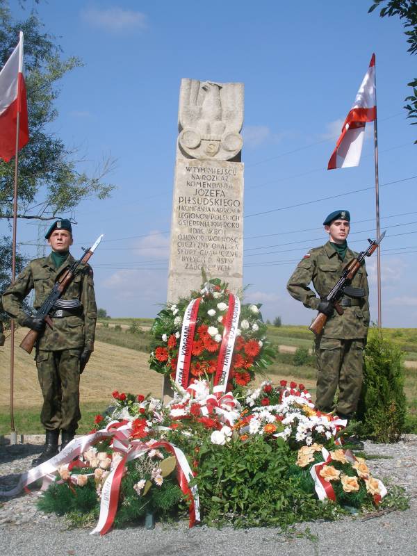 W miejscu dawnej granicy zaborów austriackiego i rosyjskiego 11 listopada 1936 został umieszczony kamienny obelisk. Znajdujący się na nim napis:„w tym miejscu, na rozkaz komendanta Józefa Piłsudskiego, Pierwsza Kompania Kadrowa Legionów Polskich 6 sierpnia 1914 roku idąc w bój o honor i wolność ojczyzny, obaliła słupy graniczne byłych państw zaborczych” - świadczy o wydarzeniach, które miały miejsce w Michałowicach latem 1914 roku. Wtedy to 1 kompania kadrowa Wojska Polskiego, pod dowództwem Tadeusza Kasprzyckiego "Zbigniewa", złożona z czterech plutonów: Kazimierza Piątka "Herwina", Henryka Paszkowskiego "Kroka", Stanisława Bukackiego „Burhandta” i Jana Kruszewskiego "Kruka", oraz oddział ułanów Władysława Prażmowskiego "Beliny", podniosła sztandar walki o Wolność, Honor i Suwerenność Narodową, zapoczątkowując epopeję Legionów Polskich i Polskiej Organizacji Wojskowej. W tym miejscu od 1924 po 1939 i znów od 1981 roku rozpoczynał się i wciąż jest podejmowany historyczny marsz Szlakiem Kadrówki.