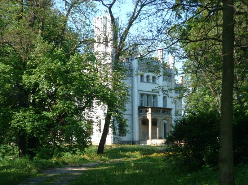 Pałac wzniesiony przez Alfreda Milieskiego w latach 1857-1865. Obiekt powstał na miejscu starszego założenia dworskiego. Pałacyk to zabytek architektury o cechach angielskiego neogotyku projektu znanego krakowskiego architekta Filipa Pokutyńskiego.