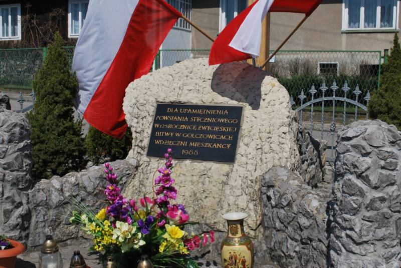 W Golczowicach zobaczyć można krzyż i głaz z tablicą poświęcone powstańcom styczniowym, którzy 22 kwietnia 1863 r. stoczyli tu zwycięską walkę z wojskami rosyjskimi.