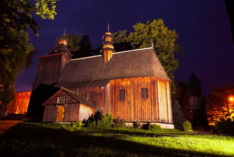 Jeden z najstarszych zabytków drewnianego budownictwa sakralnego na terenie Małopolski. Powstał on ok. 1515 r. na miejscu starszego, wzmiankowanego już w roku 1335. Wyniki badań wykazały, że został on zbudowany z drewna jodłowego ściętego w sezonie zimowym 1508/9. Odnawiany i restaurowany wielokrotnie. W latach 1671-1681 kościół podmurowano, pokryto nowym dachem, odnowiono wnętrza, otoczono murem obwodowym, w 1889 przebudowano zakrystię, ostatnia renowacja odbyła się w latach 1991-1996. Wewnątrz kościoła znajdują się cenne dzieła sztuki: późnorenesansowy ołtarz główny, gotycki obraz Matki Boskiej z Dzieciątkiem z XV w., skrzydła późnogotyckiego tryptyku oraz obraz Chrystusa Frasobliwego z pocz. XIV w. Obok kościoła w 1968 r. zbudowano dzwonnicę, odeskowaną i pokrytą gontem z trzema dzwonami, w tym zabytkowym dzwonem Maria z 1535r. Na cmentarzu przykościelnym znajdują się oryginalne nagrobki i epitafia.