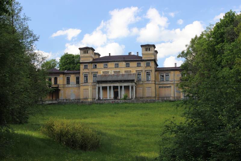 neorenesansowy pałac Potockich z poł. XIX w. Nieco dalej zobaczyć można