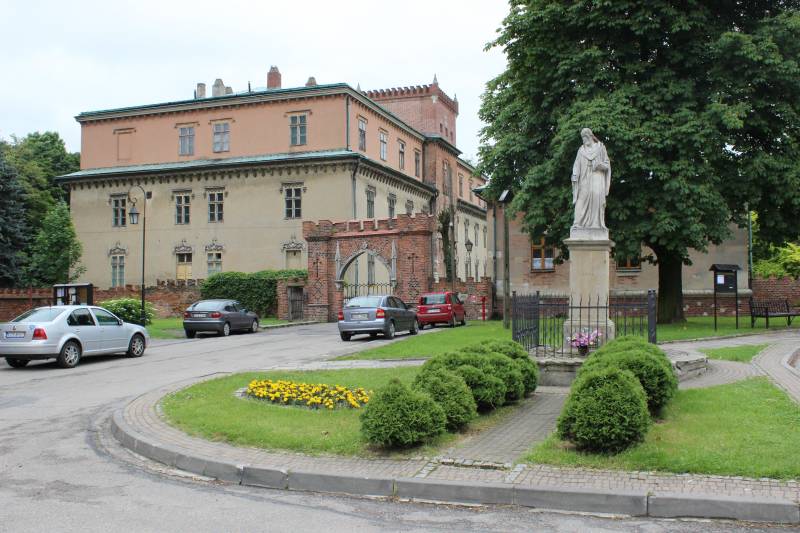 neogotyckim pałacem Potockich, tj. przebudowanym dawnym zamkiem