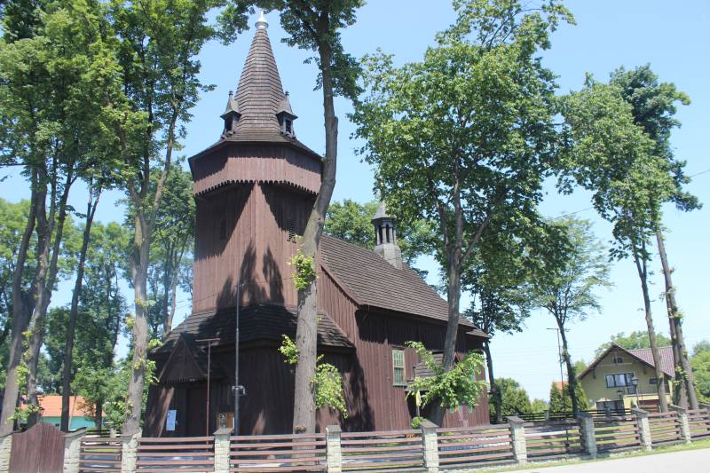 również się kończy. Prowadzi wokół całej gminy Zator, do najbardziej